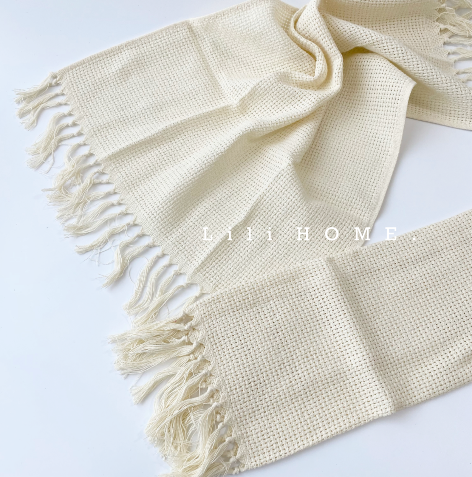 【フリンジランチマット2枚/キッチンクロス/ランチョンマット/布巾/ナチュラルインテリア/北欧雑貨/海外インテリア】ivory